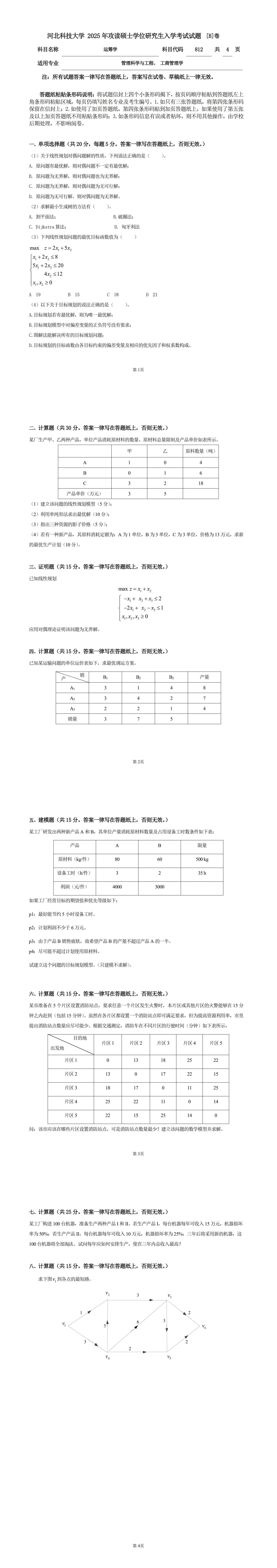 812运筹学试题B