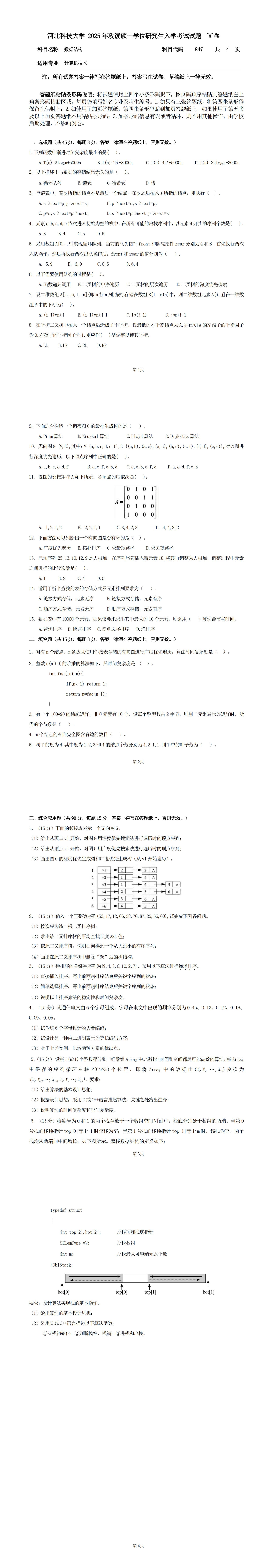847数据结构[A卷]