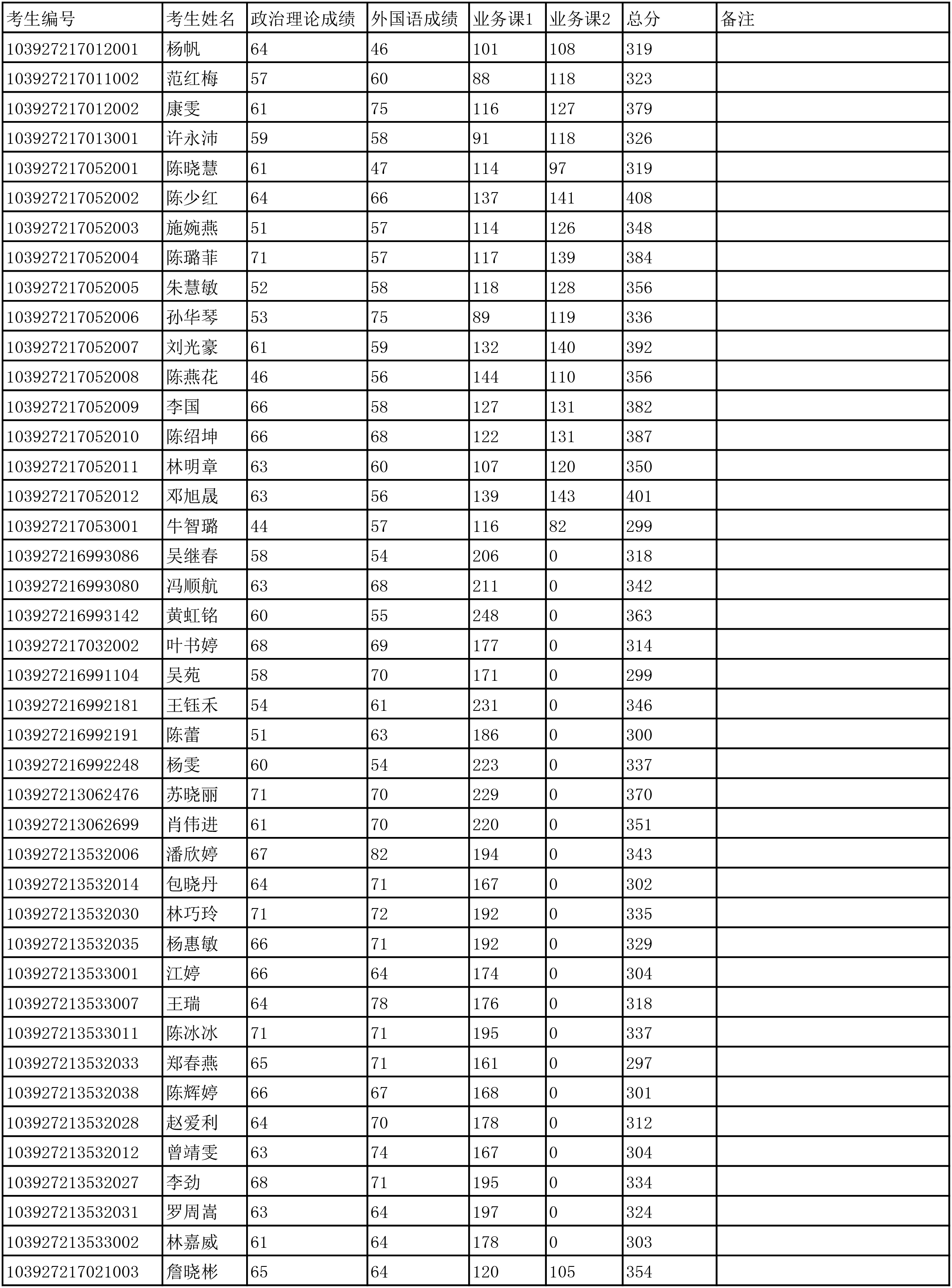 福建医科大学2017年硕士研究生复试名单