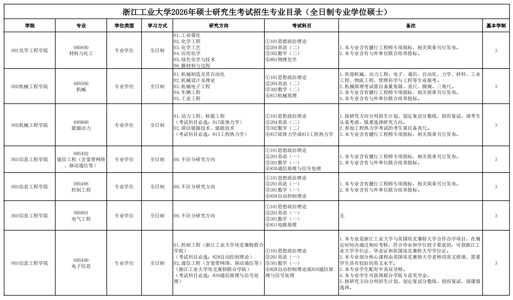 2026年浙江工业大学全日制专业学位硕士硕士研究生考试招生专业目录