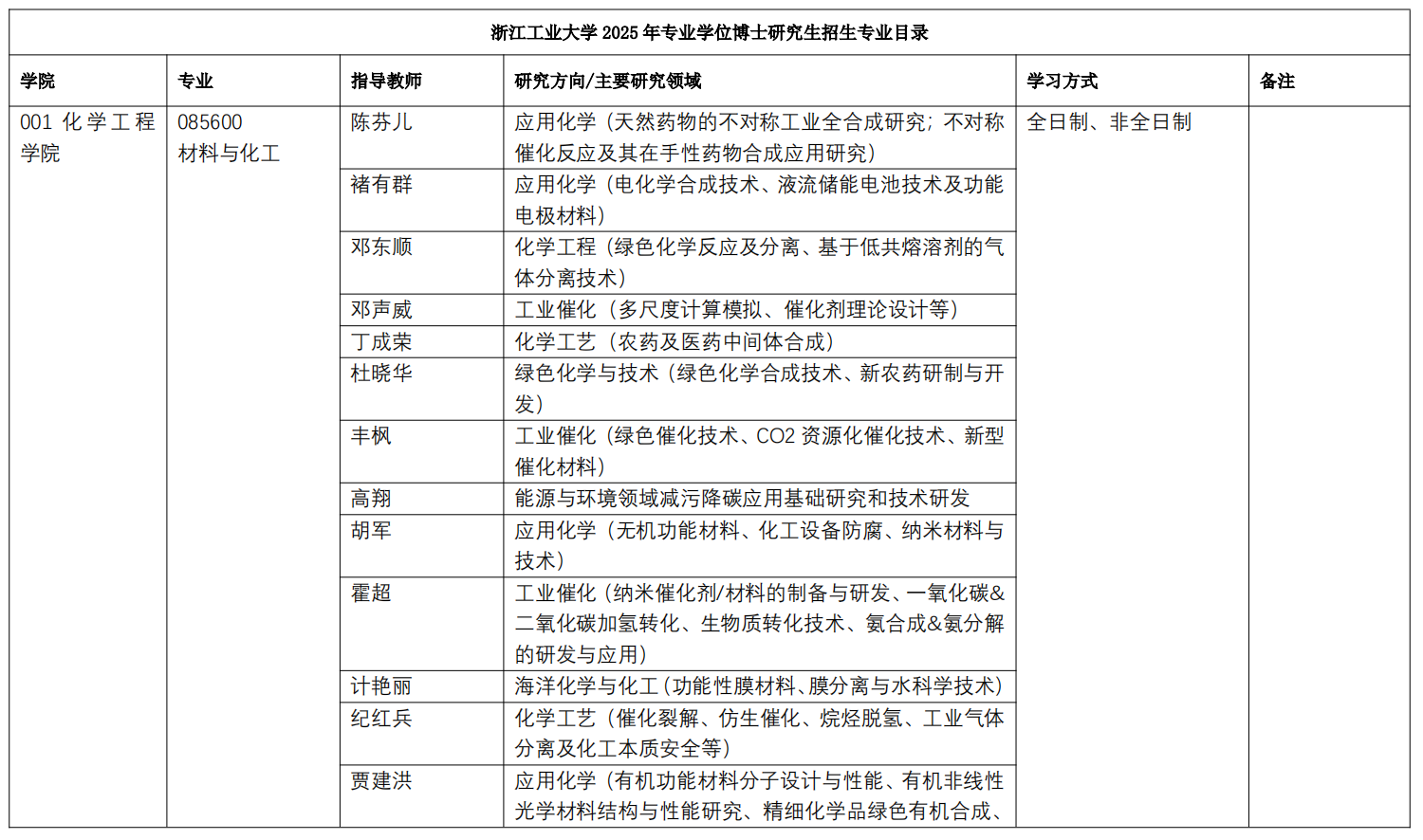 2025年浙江工业大学专业学位博士研究生招生专业目录