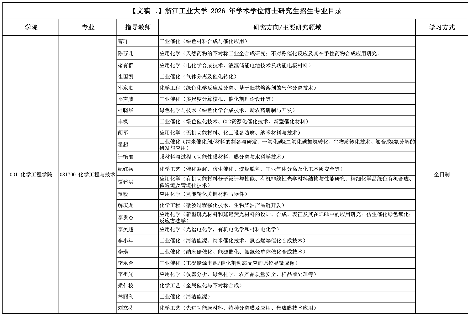 2026年浙江工业大学学术学位博士研究生招生专业目录