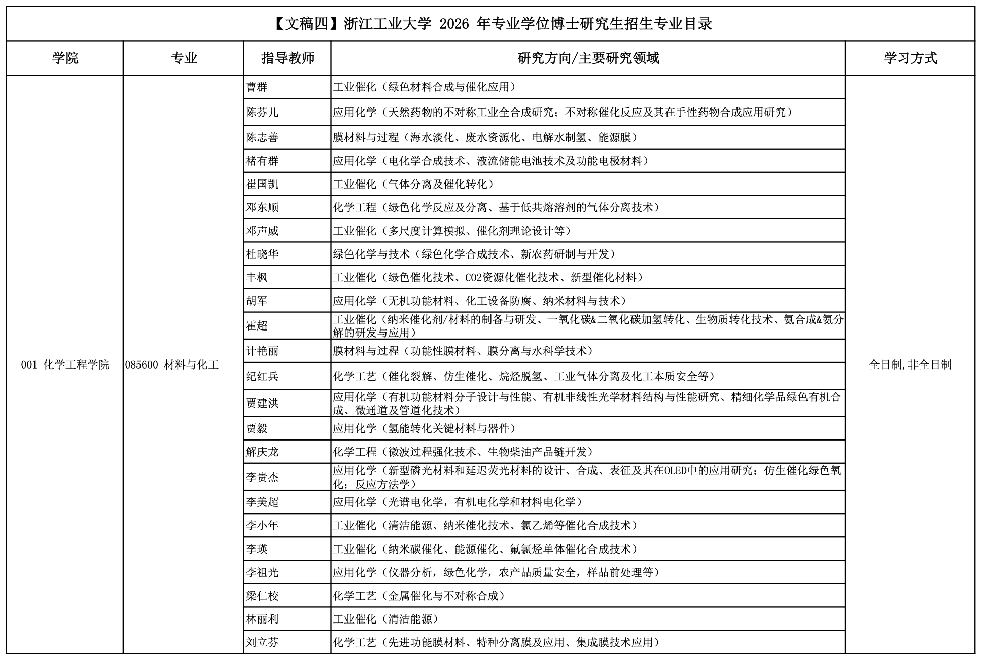 2026年浙江工业大学专业学位博士研究生招生专业目录