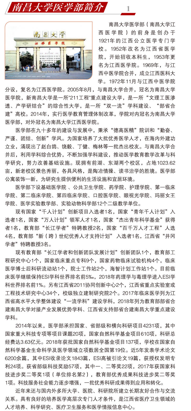 2020年南昌大学医学部研究生招生简介