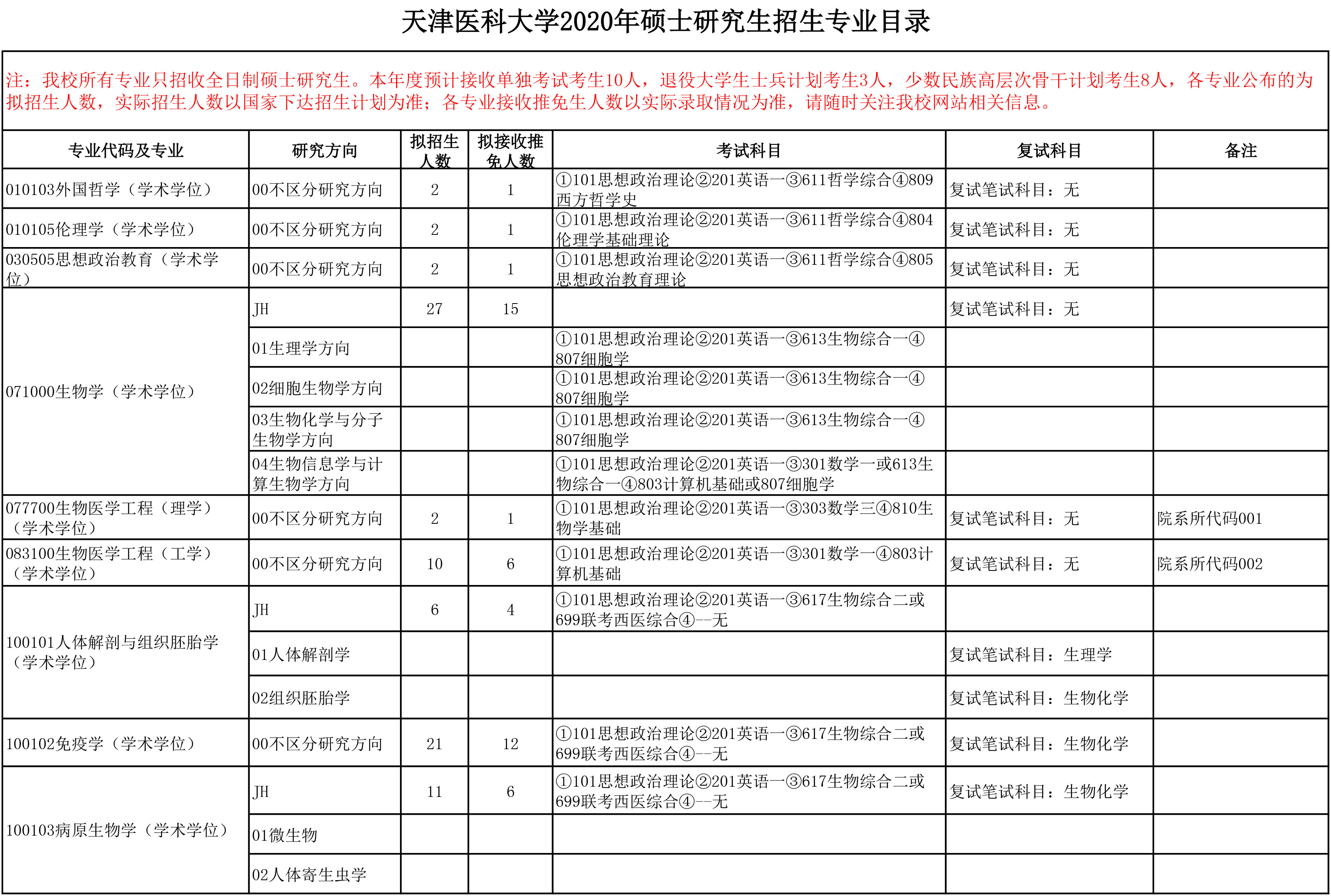 注:关于此招生简章的最终解释权在天津医科大学研究生招生办公室。