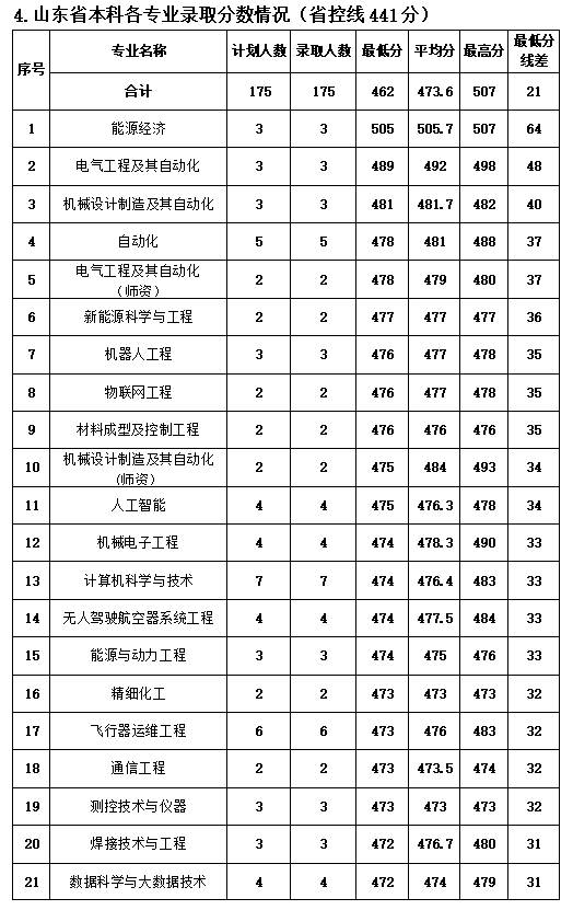 山东省本科各专业录取分数情况(省控线441分)