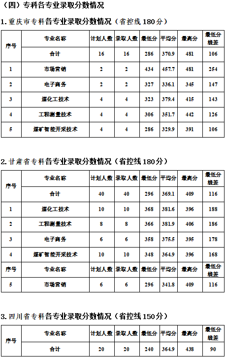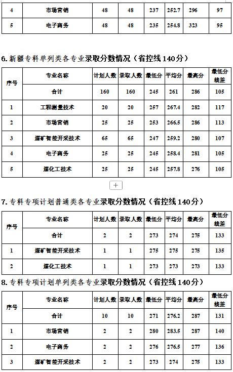 专科各专业录取分数情况
