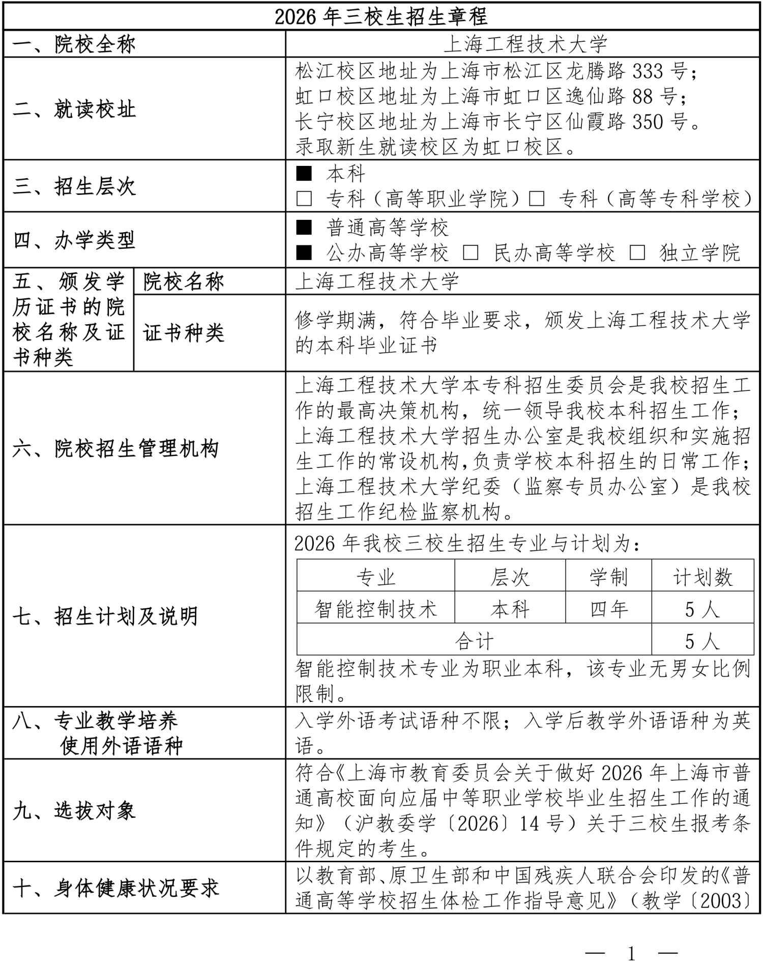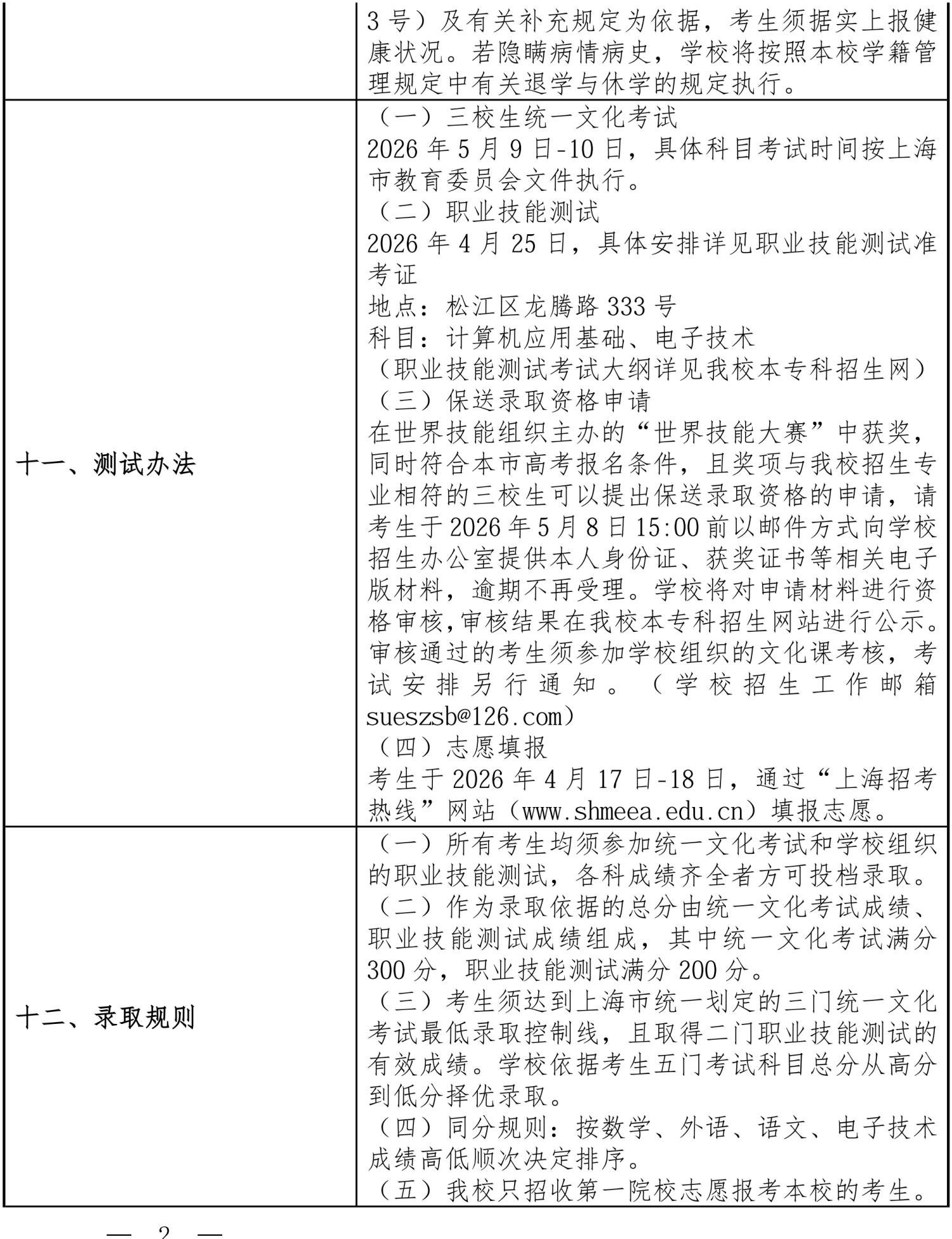 2026年三校生招生章程