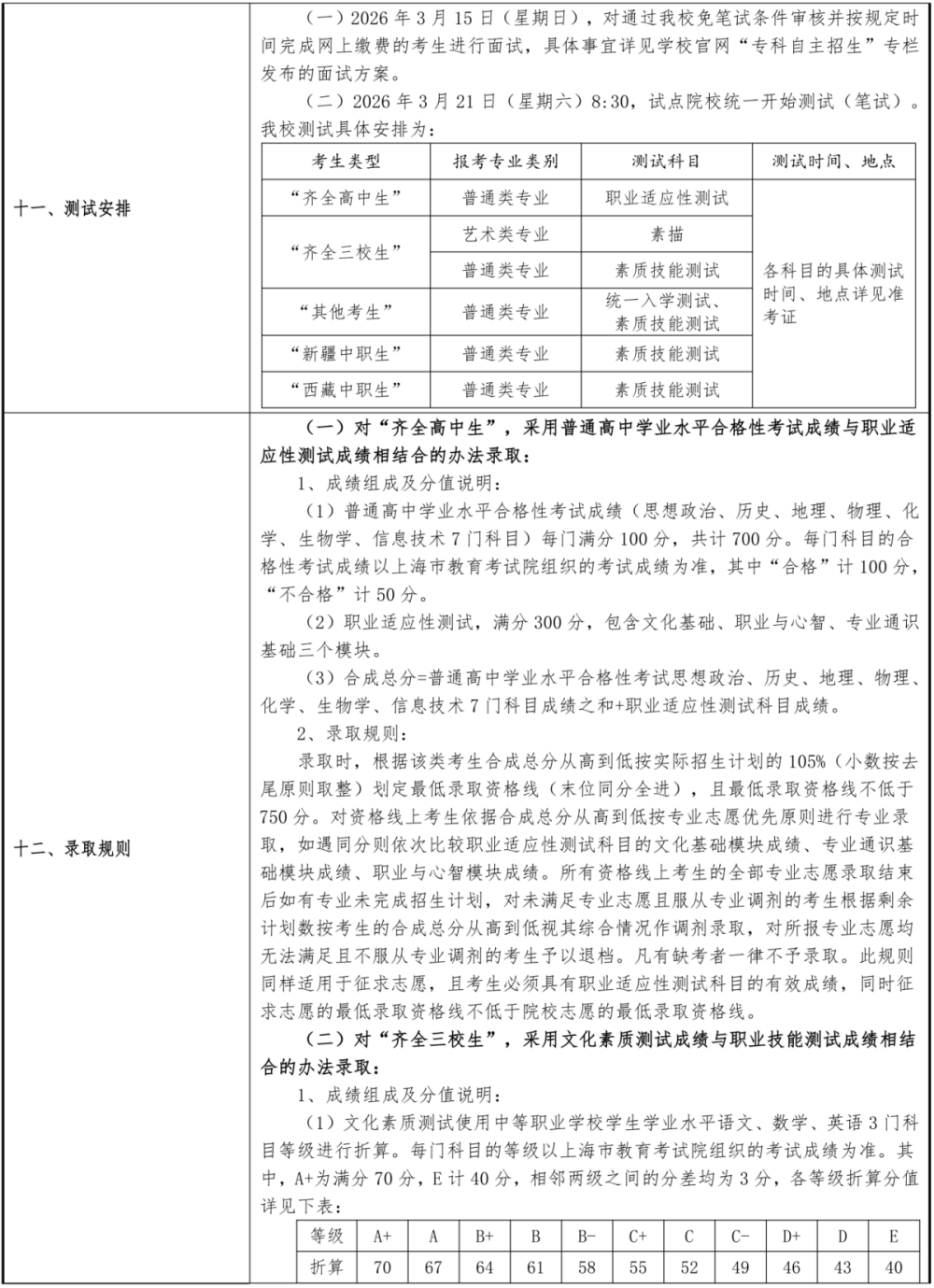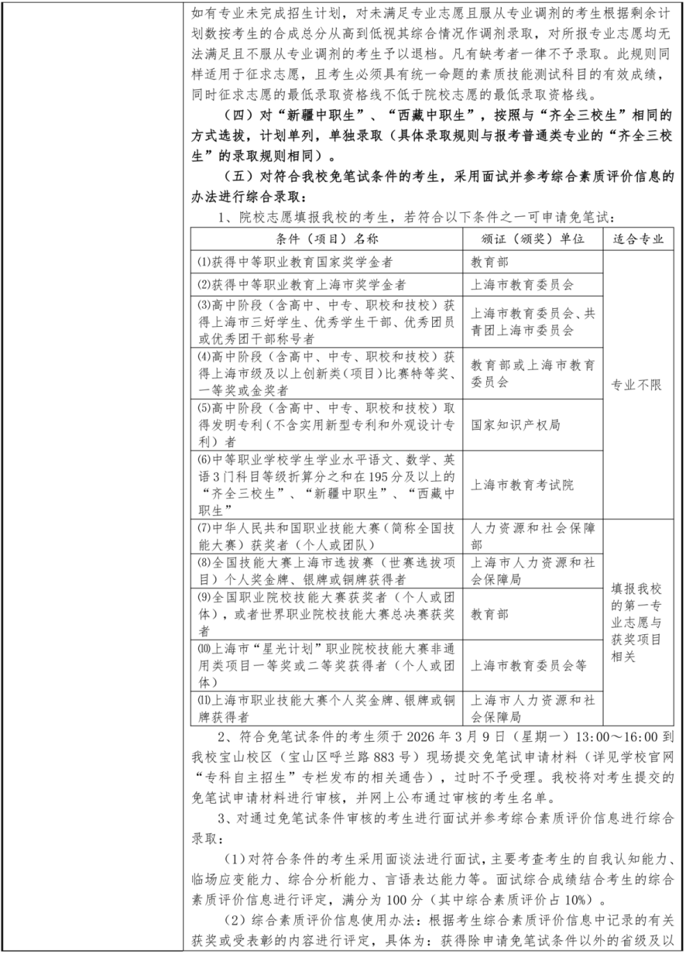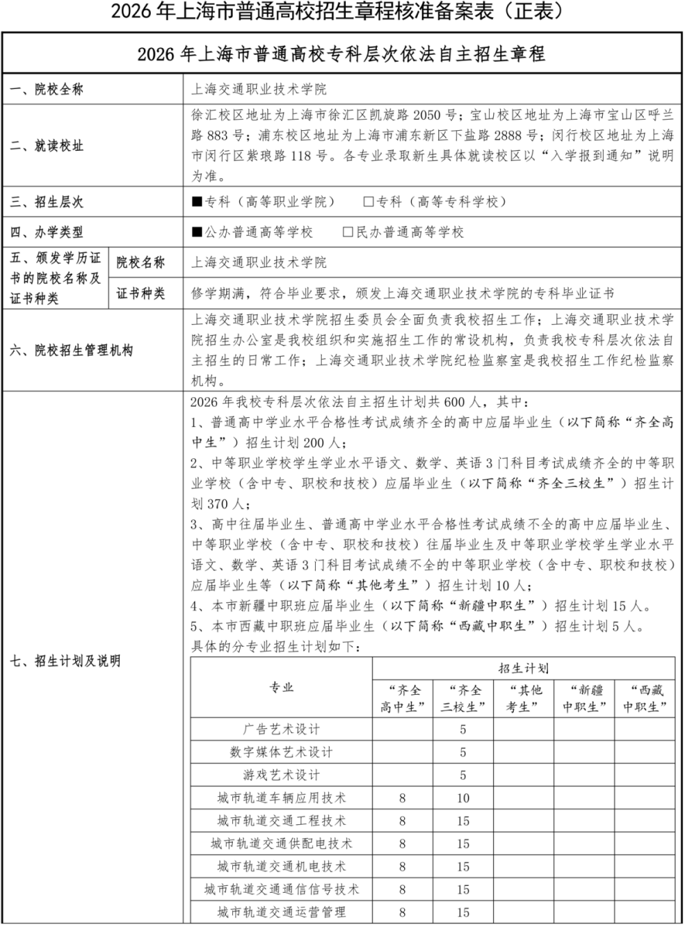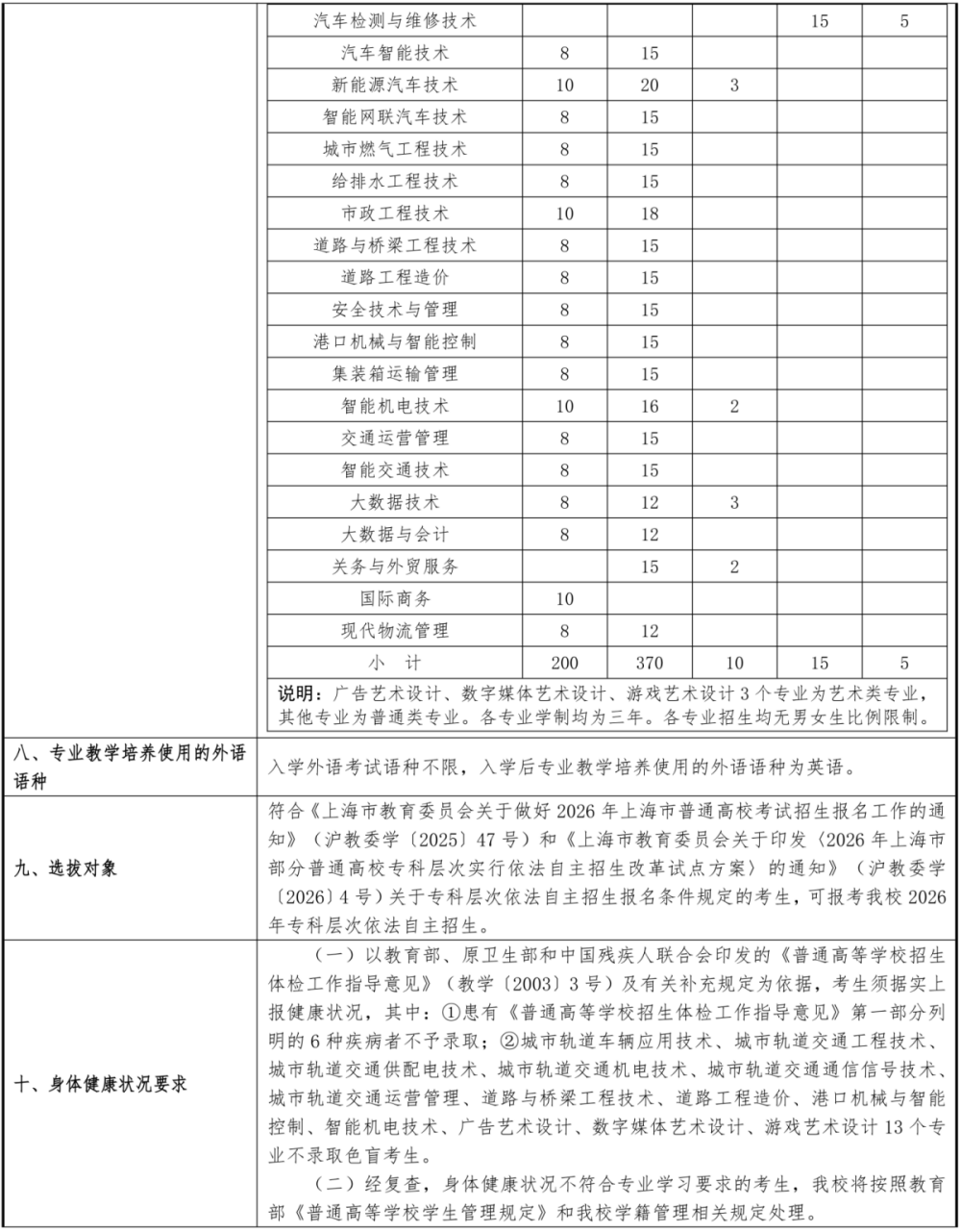 2026年上海交通职业技术学院依法自主招生章程