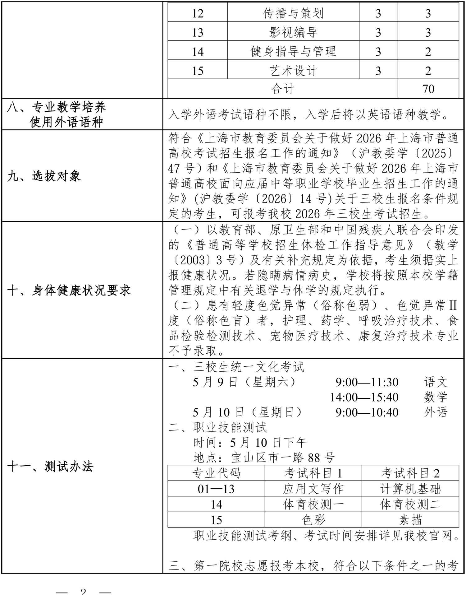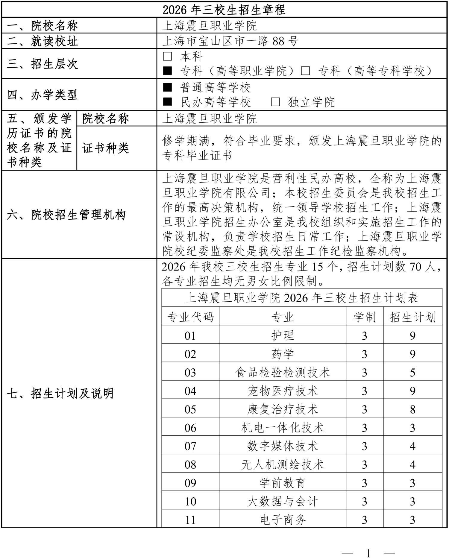 上海震旦职业学院2026年三校生招生章程