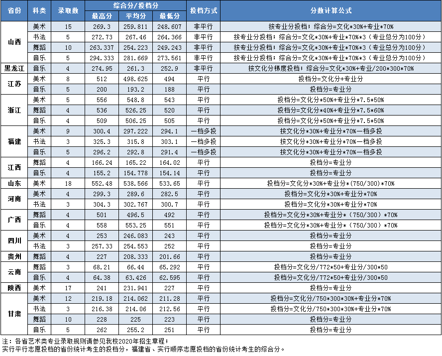 2020年我校省外艺术类招生情况