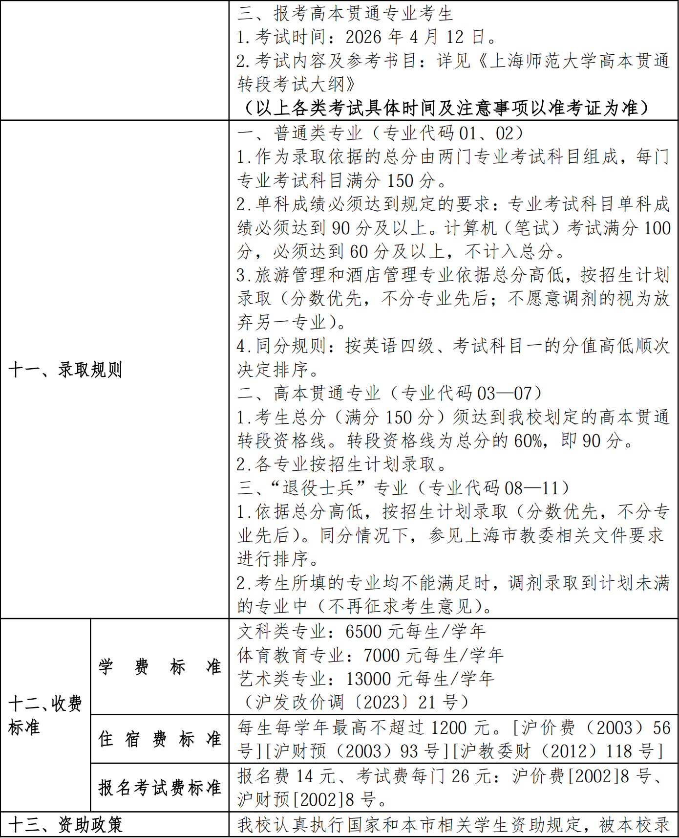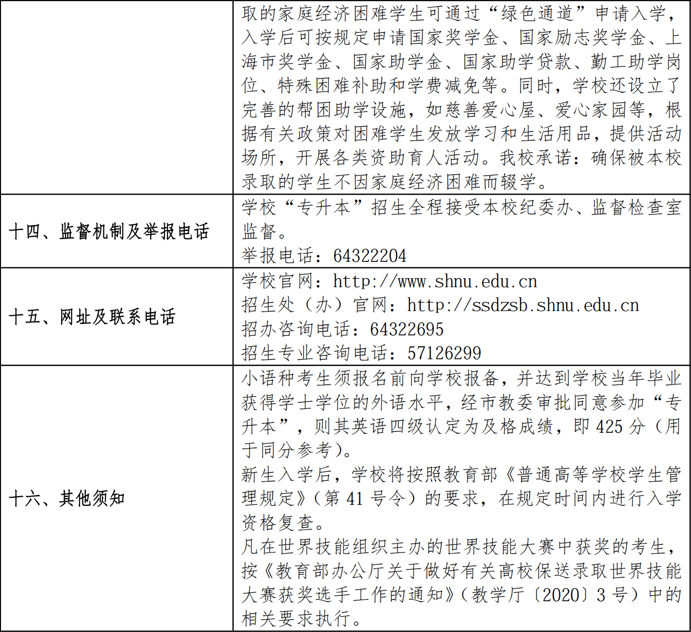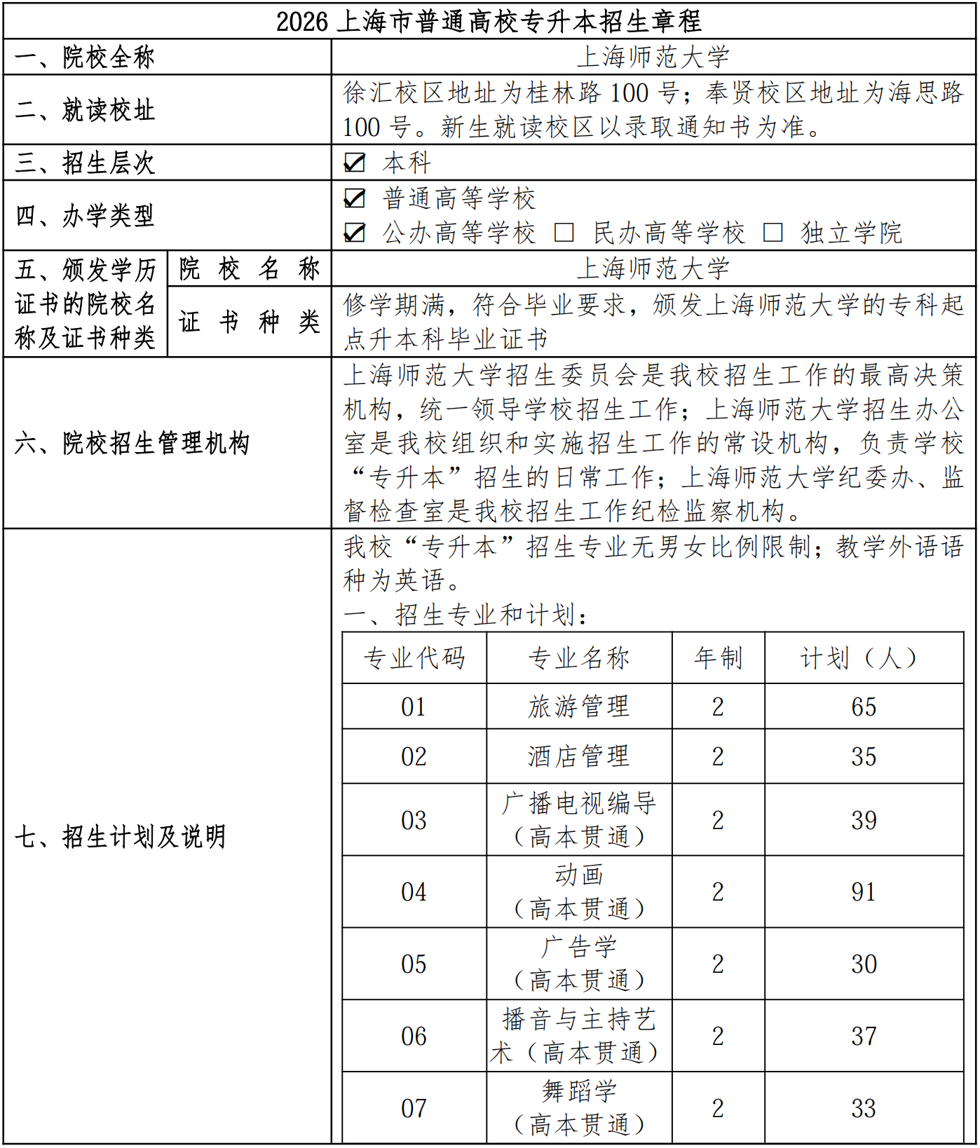 2026年上海师范大学专升本招生章程