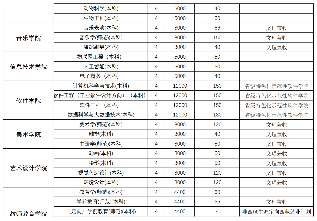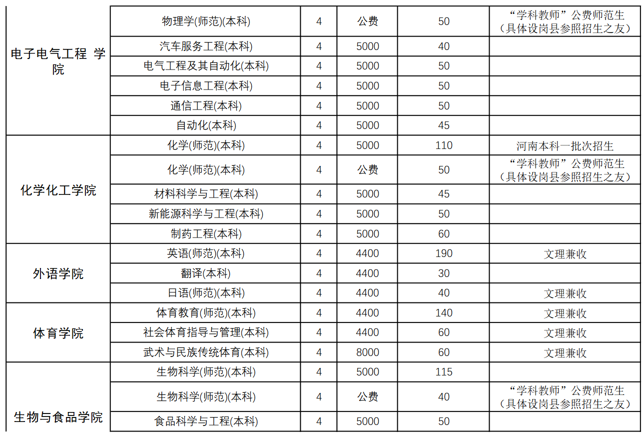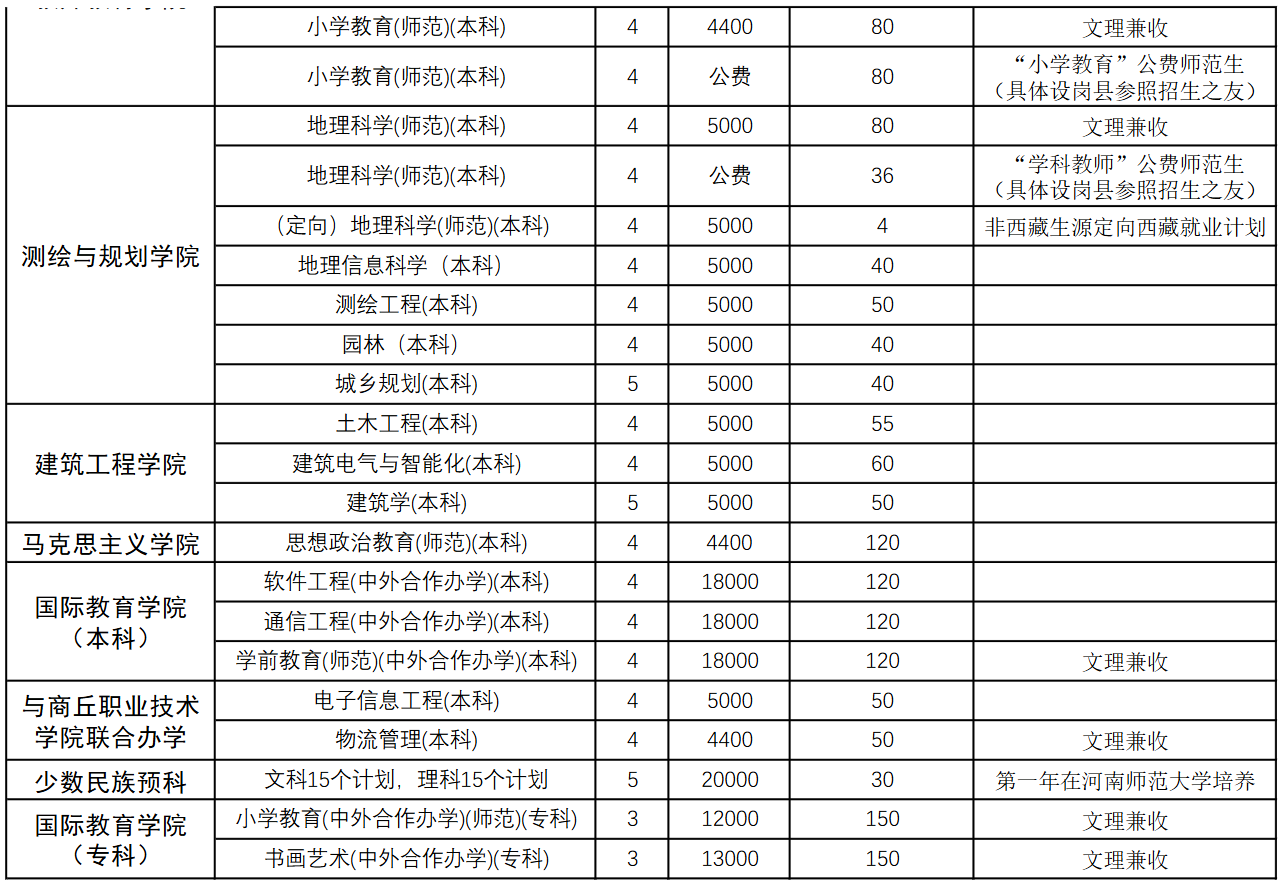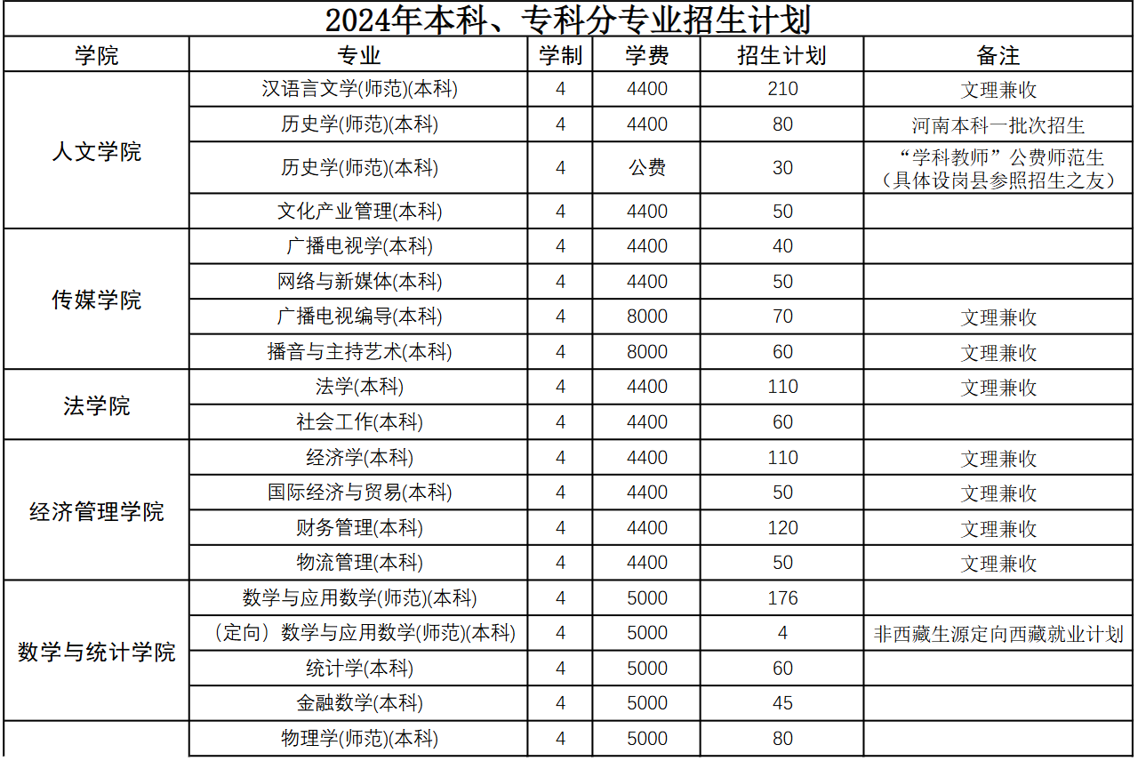 商丘师范学院2024年本科、专科分专业招生计划
