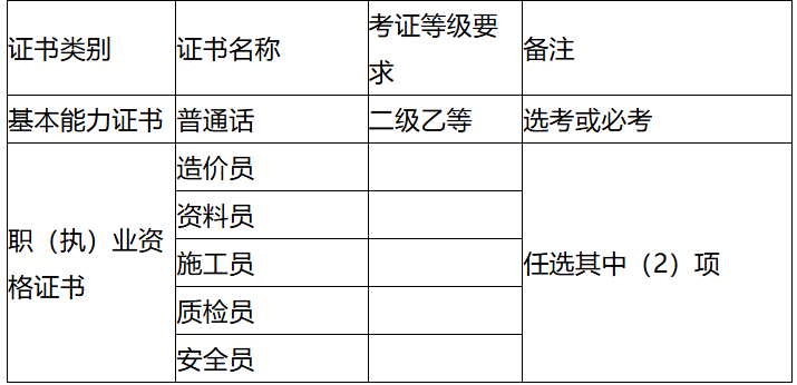 要求学生在校期间,考取必要的基本能力证书及职业资格证书,并鼓励学生考取多项职业资格证书。