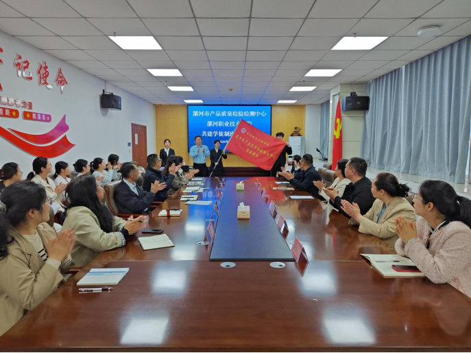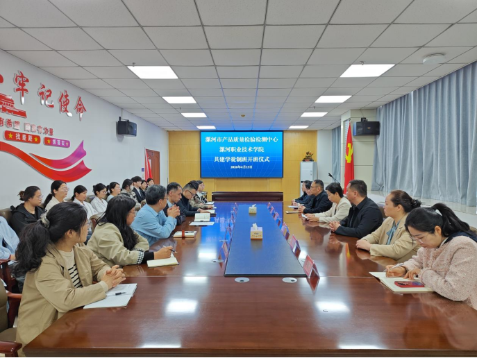 近日,我校与漯河市产品质量检验检测中心联合举办的学徒制班开班仪式隆重举行。副校长石晓、漯河市产品质量检验检测中心主任李浩出席,食品技术创新学院负责人、合作双方代表、学徒制班全体学员参加。仪式由漯河市产品质量检验检测中心副书记孔德彬主持。