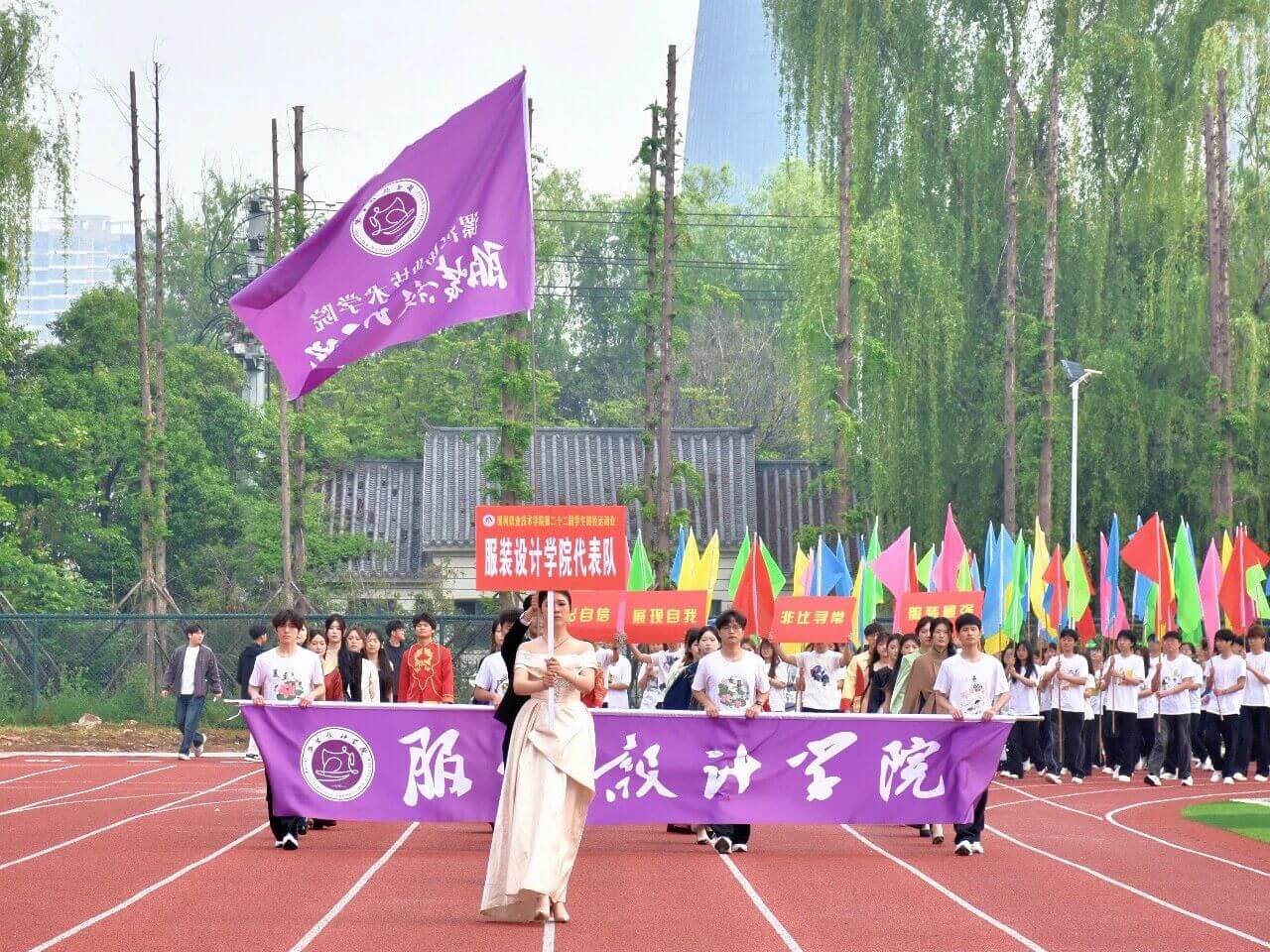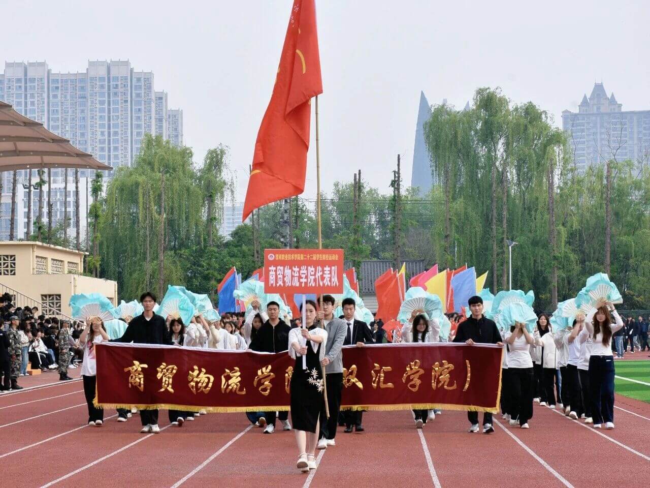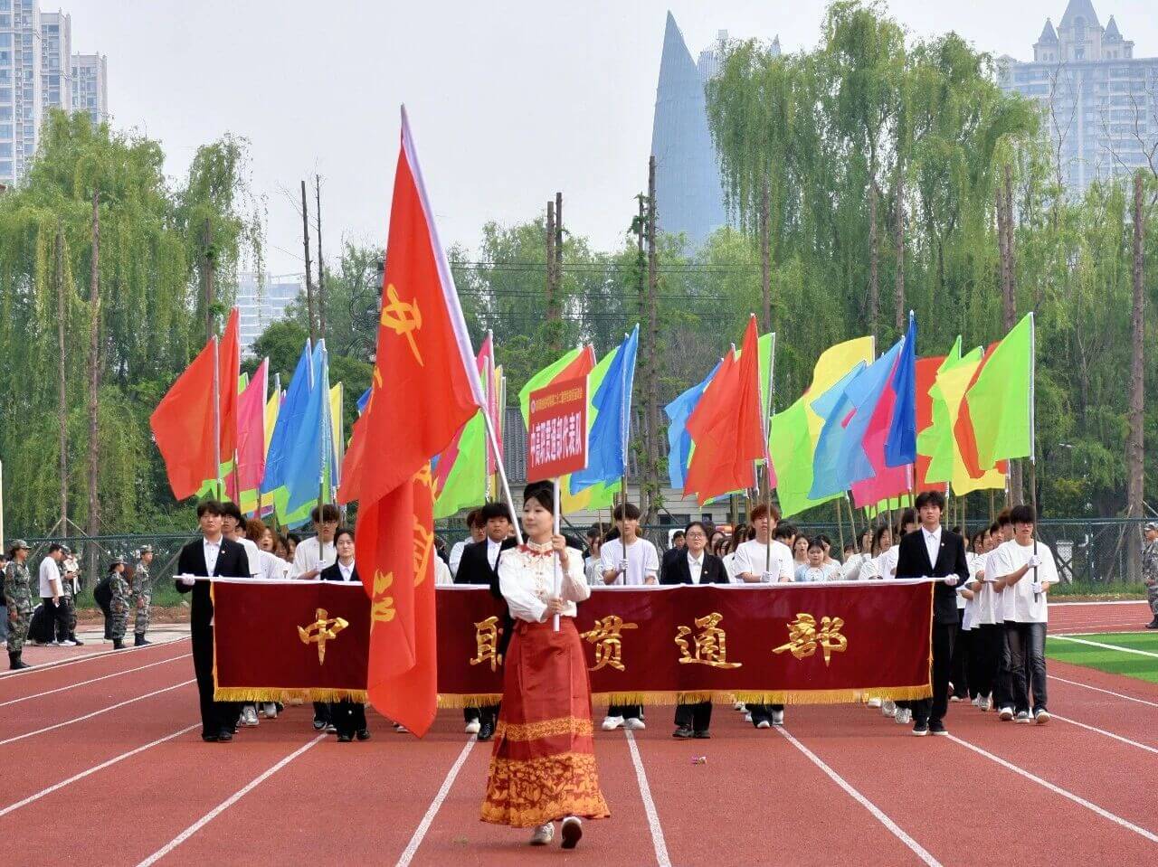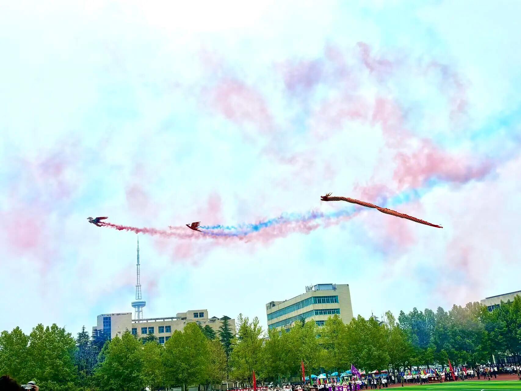 12个二级学院师生组成的方阵依次走过主席台。他们步伐整齐,口号嘹亮,展现了漯职院师生昂扬向上的精神风貌,赢得在场观众的阵阵掌声与喝彩。